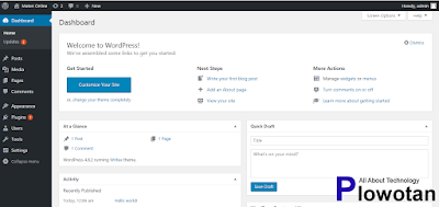 - Selanjutnya akan muncul dashboard dari wordpress yang sudah kamu buat tadi.