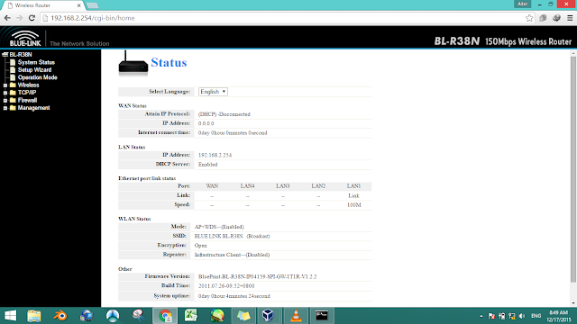 - Setelah sudah terhubung selanjutnya buka perambaan. kemudian ketik 192.168.0.254, untuk masuk ke menu dashboard Bluelink R38N